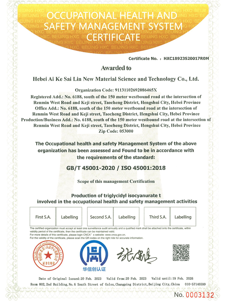 河北艾科賽林新材料科技有限公司成立于2009年,坐落在河北衡水桃城省級高新技術(shù)產(chǎn)業(yè)園區(qū),占地100畝,注冊資金2500萬元,是一家以粉末涂料固化劑及高性能特種材料研發(fā)、生產(chǎn)、銷售為一體的高新技術(shù)企業(yè)。在激烈的市場競爭中不斷壯大,產(chǎn)品憑借良好的信譽與精益求精的工藝,在市場中取得良譽和好評。公司已通過ISO9001質(zhì)量管理體系,IS014001環(huán)境管理體系、ISO45001職業(yè)健康安全管理體系。公司被認(rèn)定為“高新技術(shù)企業(yè)”,河北省“專精特新”中小企業(yè),先后獲得河北省行業(yè)“技術(shù)創(chuàng)新先進(jìn)企業(yè)”,桃城“校企合作創(chuàng)新優(yōu)秀企業(yè)”、畝均“納稅貢獻(xiàn)先進(jìn)企業(yè)”等榮譽稱號......